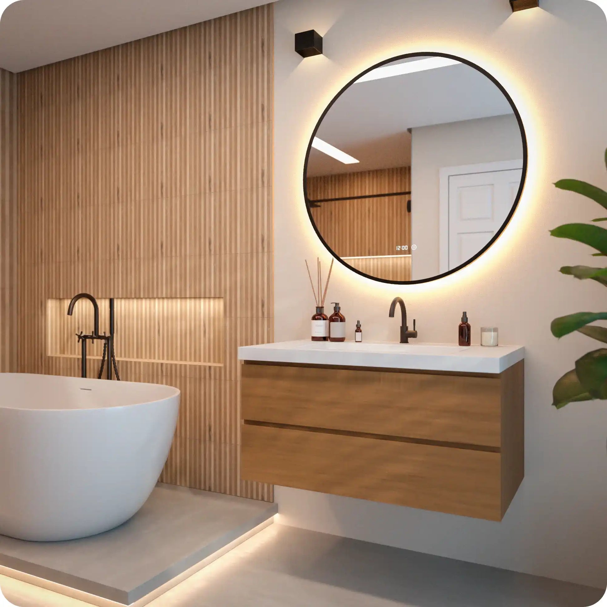 De ingebouwde anti-condens verwarmingsfolie zorgt ervoor dat de spiegel helder blijft, zelfs na een warme douche. De functie activeert automatisch wanneer je de verlichting inschakelt, waardoor je spiegel binnen enkele minuten helder en vrij van vlekken of aanslag is.