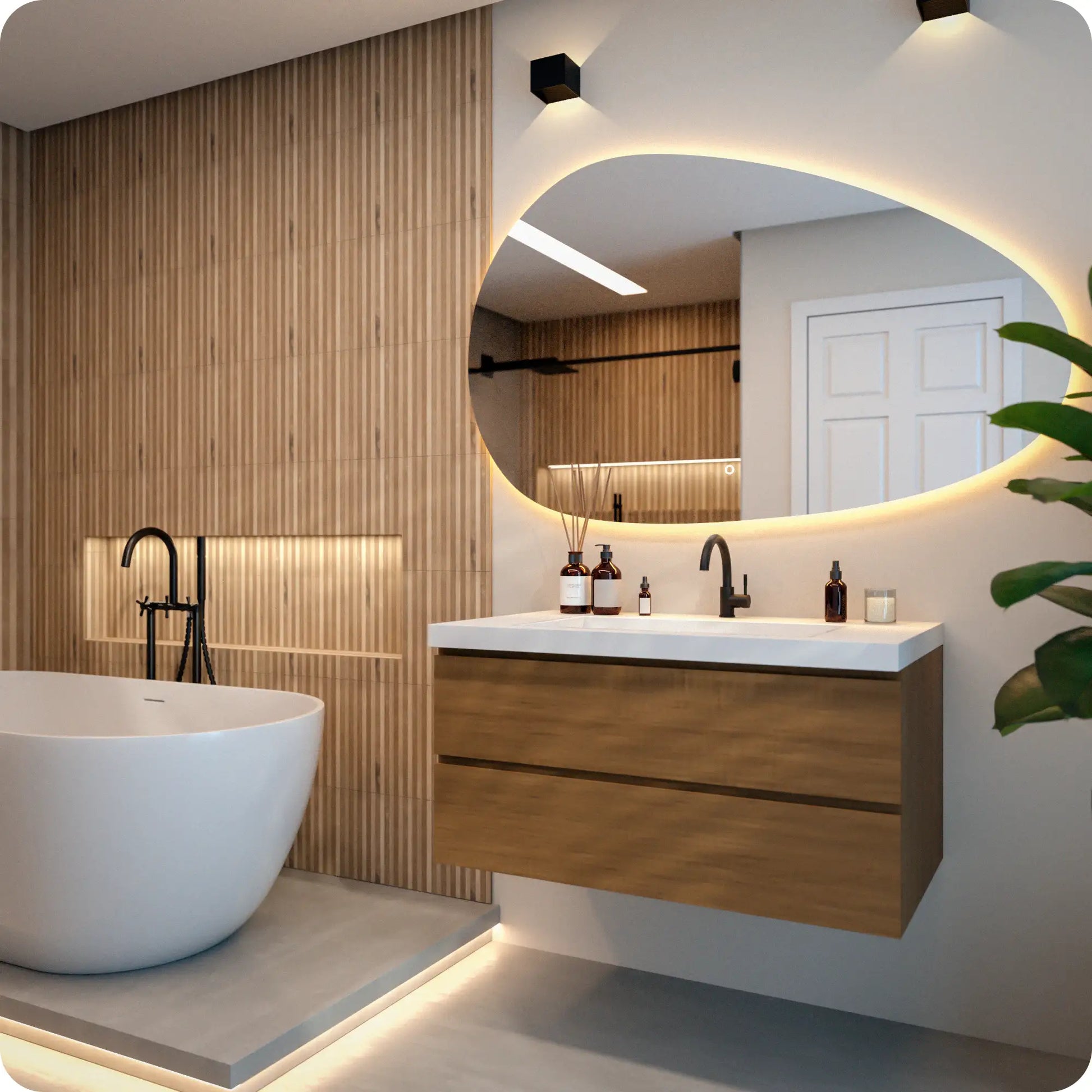 De ingebouwde anti-condens verwarmingsfolie zorgt ervoor dat de spiegel helder blijft, zelfs na een warme douche. De functie activeert automatisch wanneer je de verlichting inschakelt, waardoor je spiegel binnen enkele minuten helder en vrij van vlekken of aanslag is.