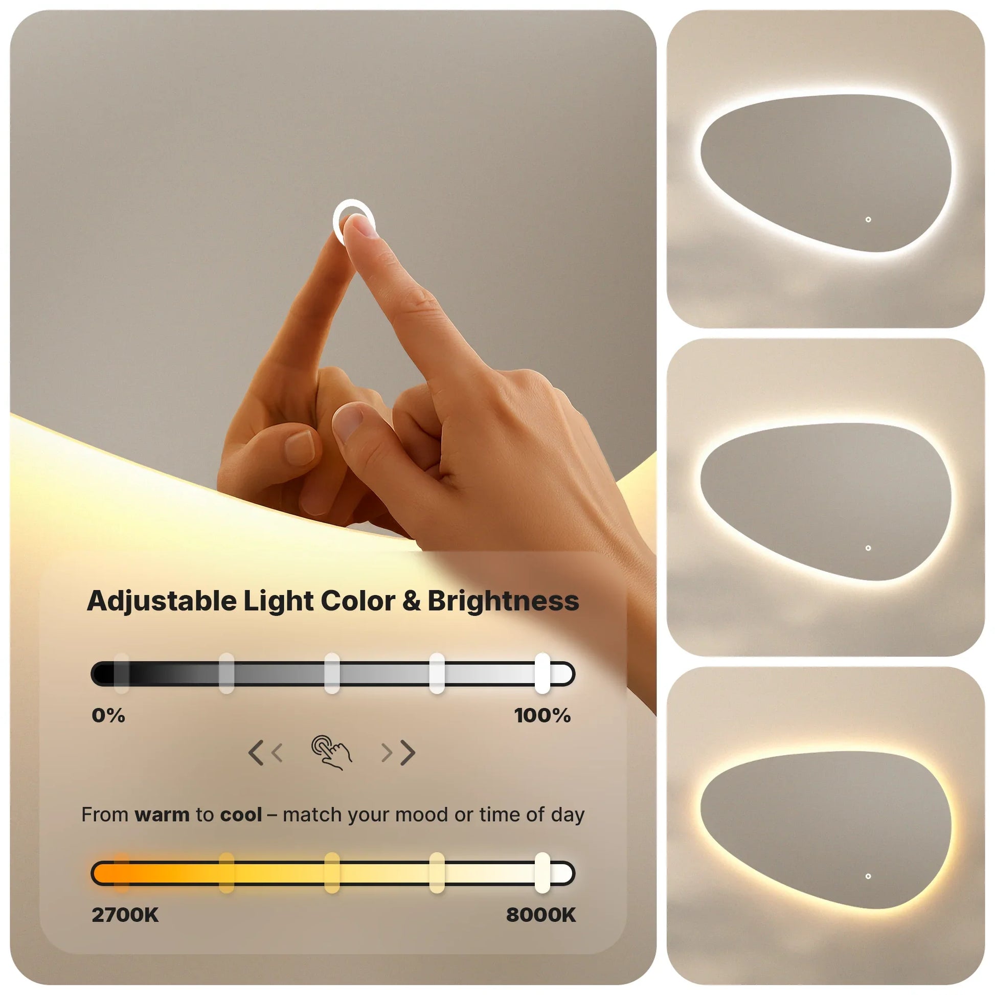 De spiegel is voorzien van dimbare LED-verlichting met meerdere lichtkleuren. Via de touchknop stel je eenvoudig de gewenste lichtsterkte en kleur in. Dankzij de geheugenfunctie onthoudt de spiegel altijd de laatst gebruikte lichtinstelling wanneer deze via de touchbediening is ingeschakeld. Zo hoef je nooit opnieuw te zoeken naar de juiste stand.