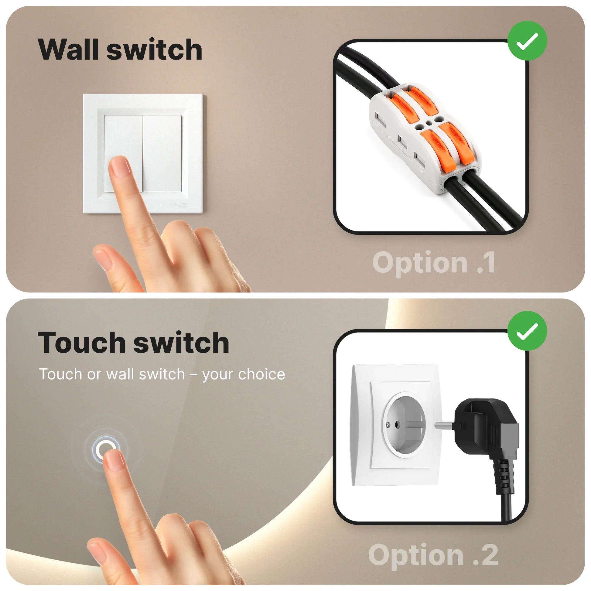 De lichtschakelaar fungeert als hoofdschakelaar voor de stroomtoevoer, terwijl de touchknop wordt gebruikt voor het in- en uitschakelen en bedienen van de verlichting.