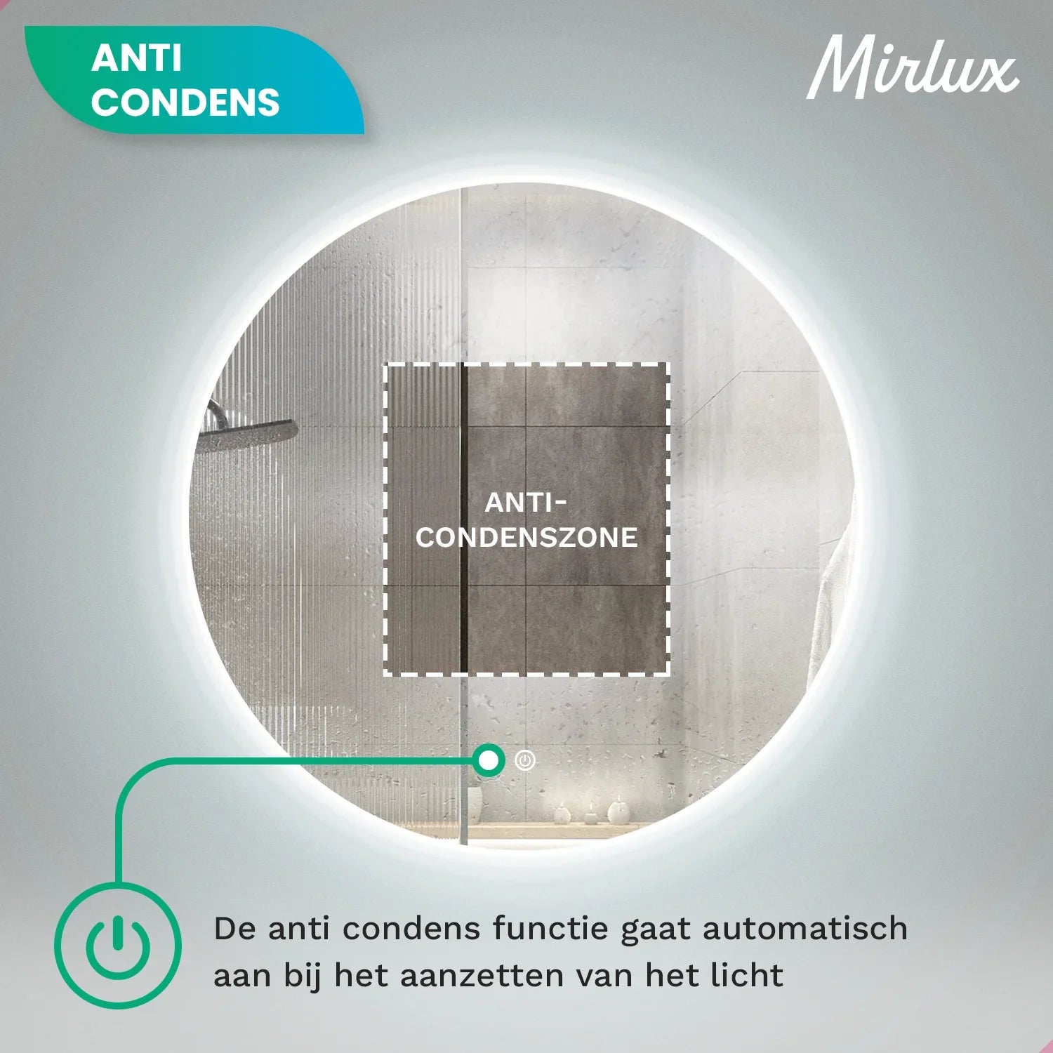 De ingebouwde anti-condens verwarmingsfolie zorgt ervoor dat de spiegel helder blijft, zelfs na een warme douche. De functie activeert automatisch wanneer je de verlichting inschakelt, waardoor je spiegel binnen enkele minuten helder en vrij van vlekken of aanslag is.