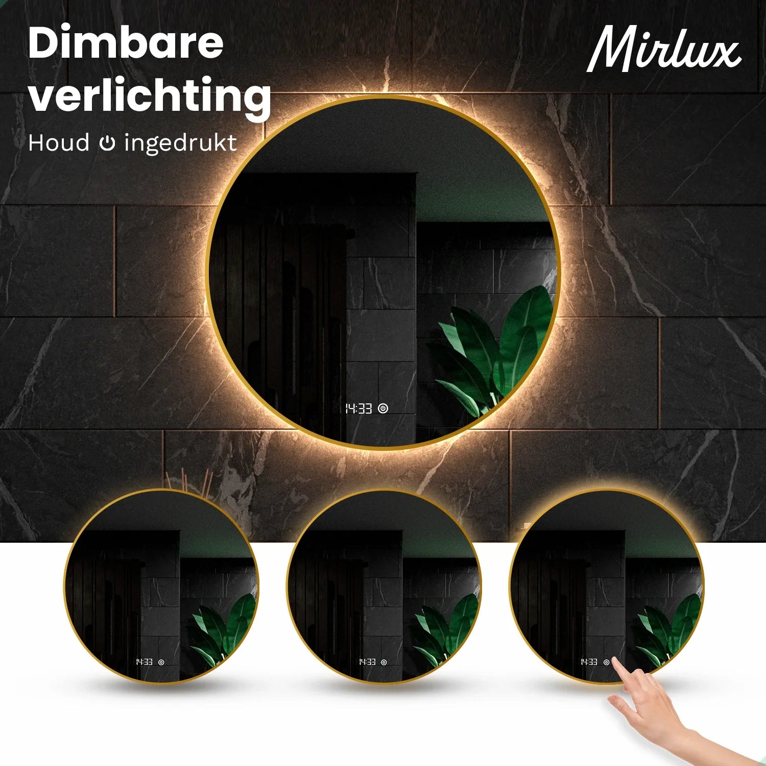 De spiegel is voorzien van dimbare LED-verlichting met meerdere lichtkleuren. Via de touchknop stel je eenvoudig de gewenste lichtsterkte en kleur in. Dankzij de geheugenfunctie onthoudt de spiegel altijd de laatst gebruikte lichtinstelling wanneer deze via de touchbediening is ingeschakeld. Zo hoef je nooit opnieuw te zoeken naar de juiste stand.