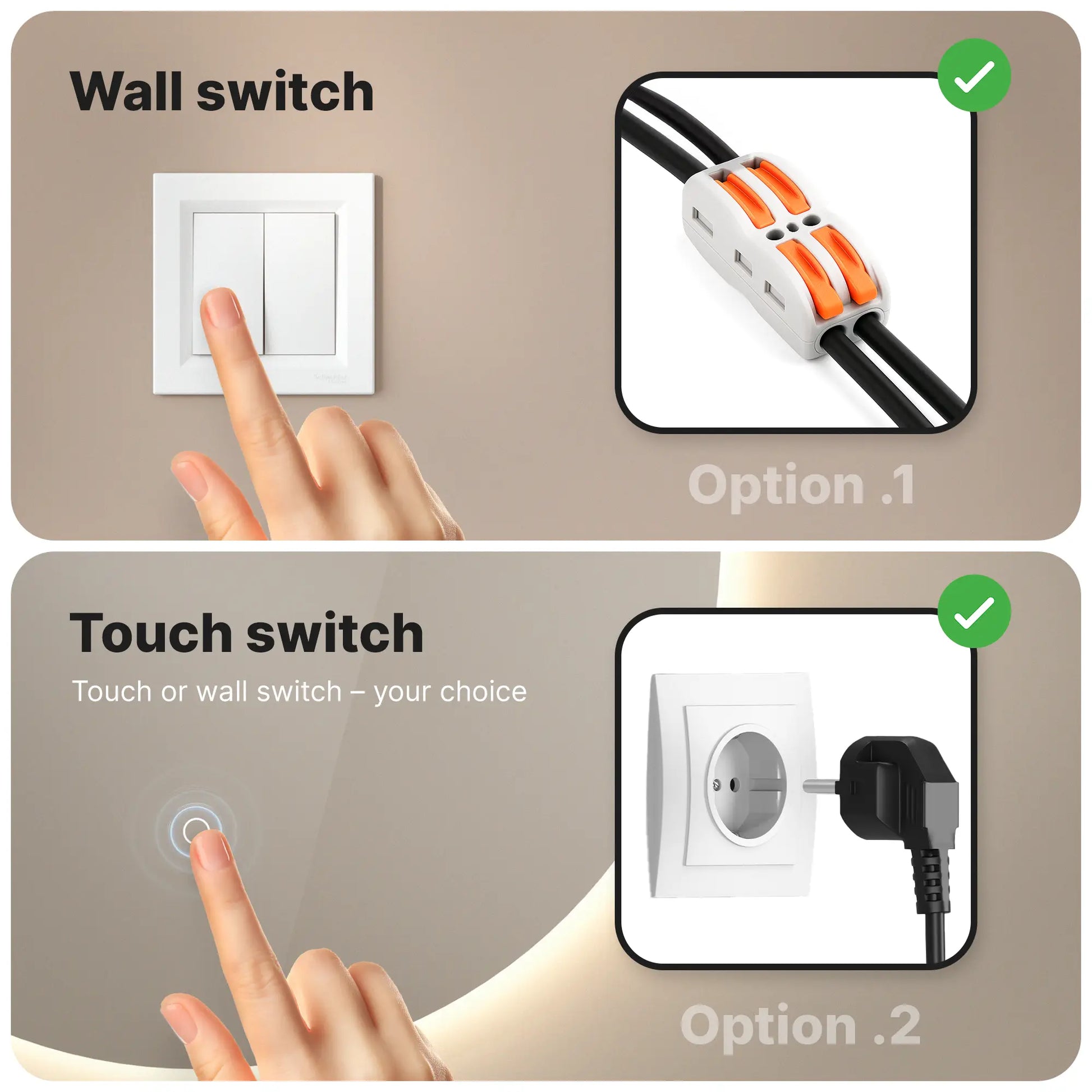 Bediening via lichtschakelaar en touchknop