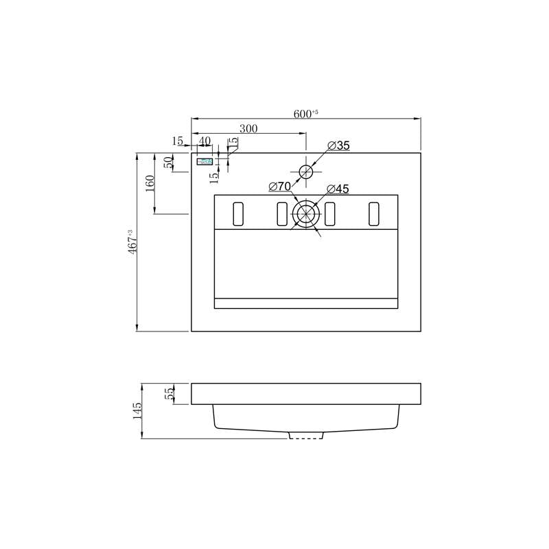 - Afmeting wastafel / toppaneel:60x47x5 cm.