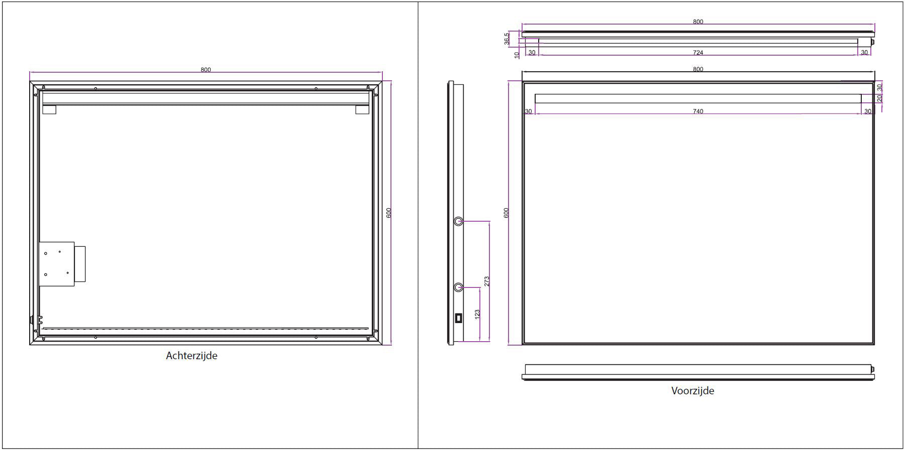 - Voorzien van spiegelverwarmings-matje van 25x35cm.