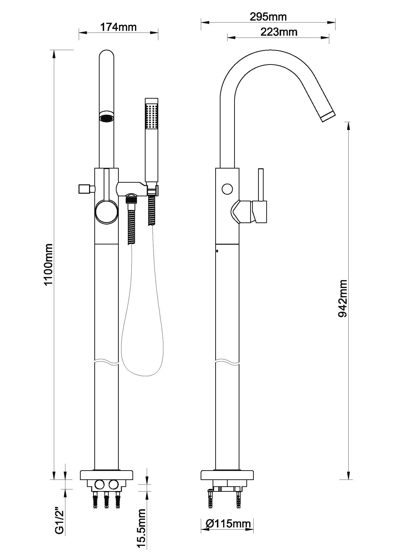 Wiesbaden Caral vrijstaande badmengkraan compleet geborsteld koper