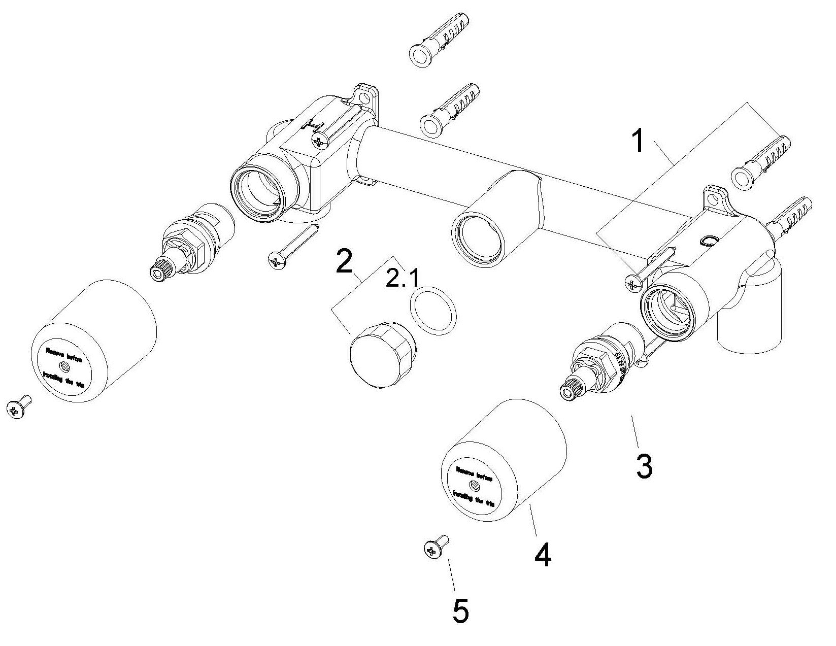 De Wiesbaden inbouwdeel 2-knops wastafelmengkraan wordt geleverd exclusief inbouwdeel (artikel 29.3100).