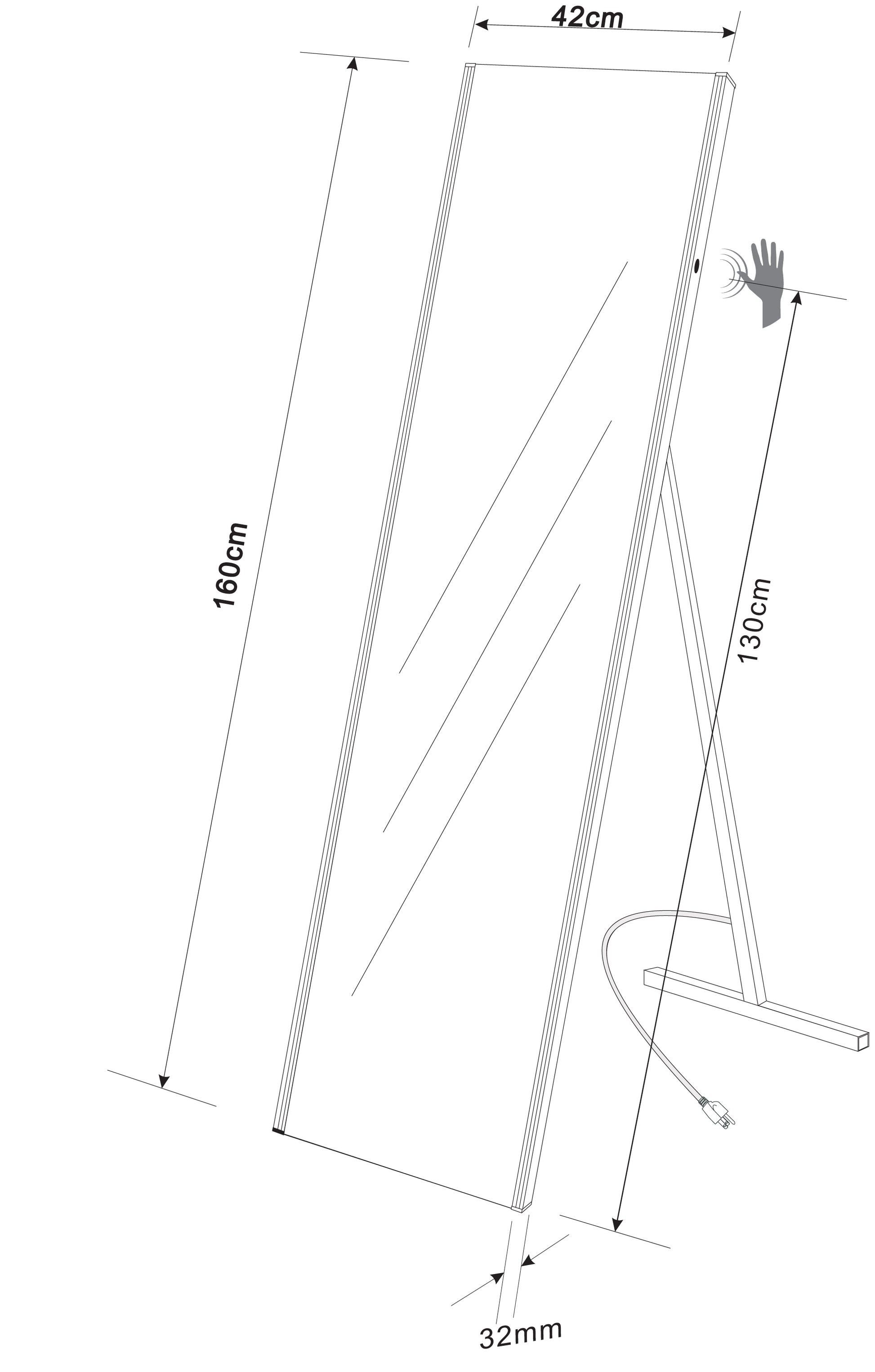 - Passpiegel 160 x 42 cm.