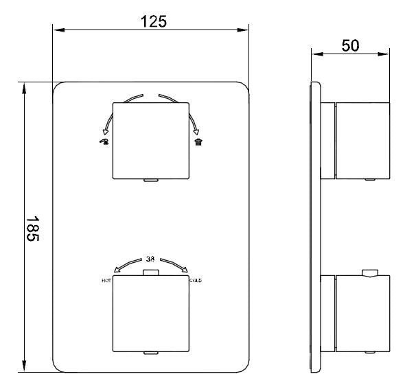 Wiesbaden Rombo afbouwdeel inbouwthermostaat 2 weg chroom