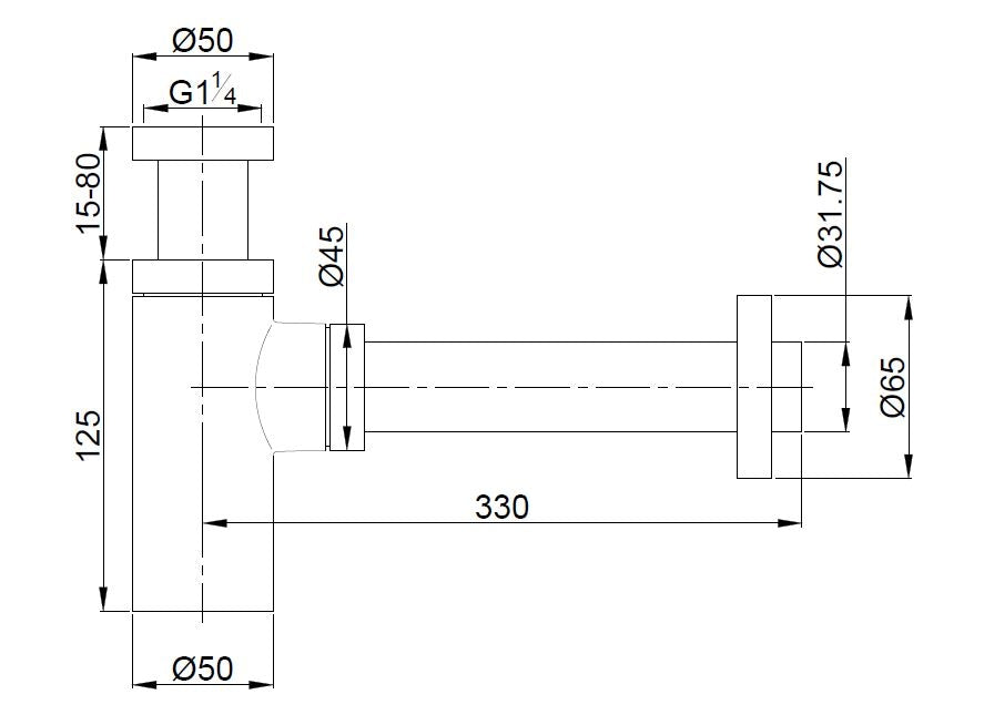 - Afvoerplugmaat: 1.1/4." (3,2 cm)