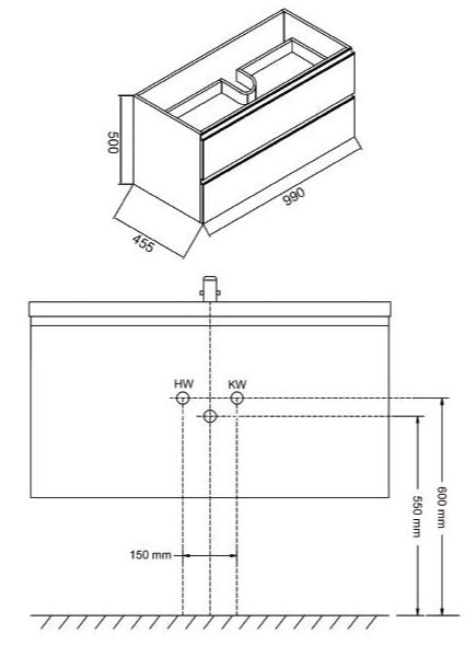Tigris Onderkast + 2 laden 1000x460 houtnerf grijs