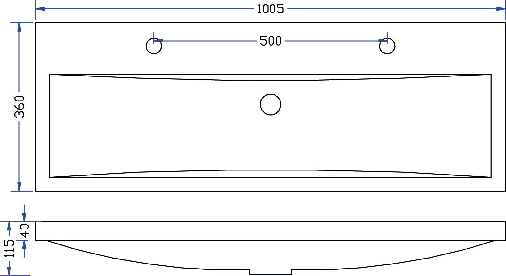 Wiesbaden wastafel 100cmx36cm twee kraangaten wit