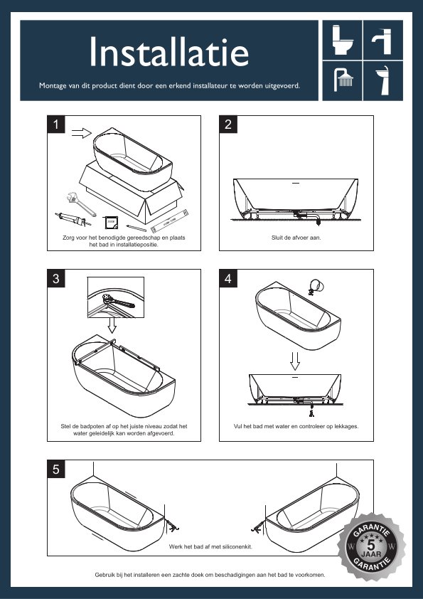 - Verstelbare badpoten voor eenvoudige installatie