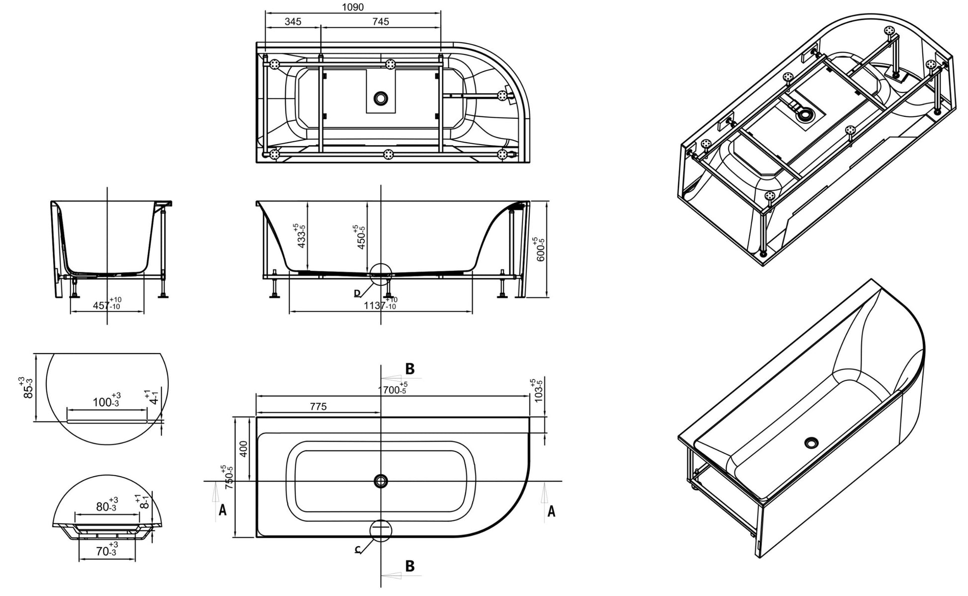 Voor optimale stabiliteit en eenvoudig installatie wordt dit half vrijstaande bad geleverd met verstelbare poten. Hierdoor staat het bad altijd stevig, ongeacht de ondergrond. Download hier de Technische Informatie en installatiehandleiding.